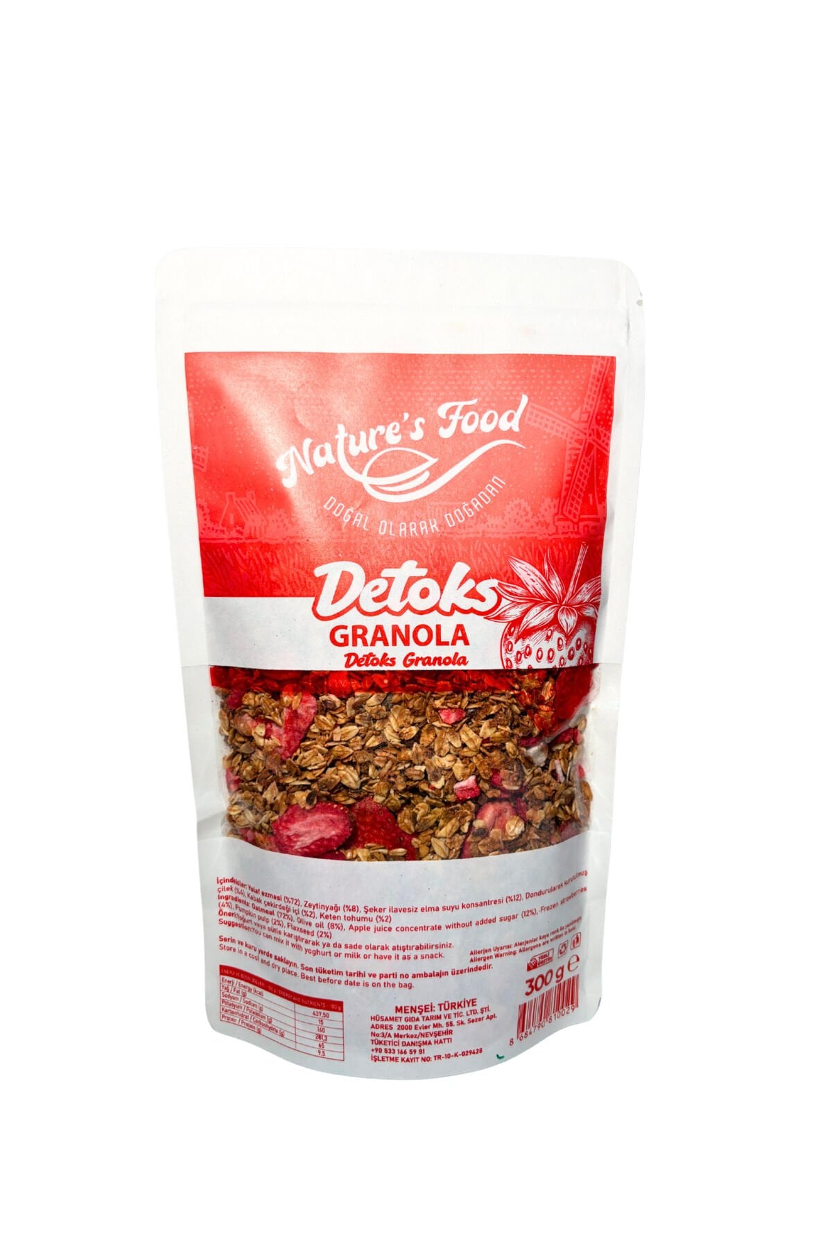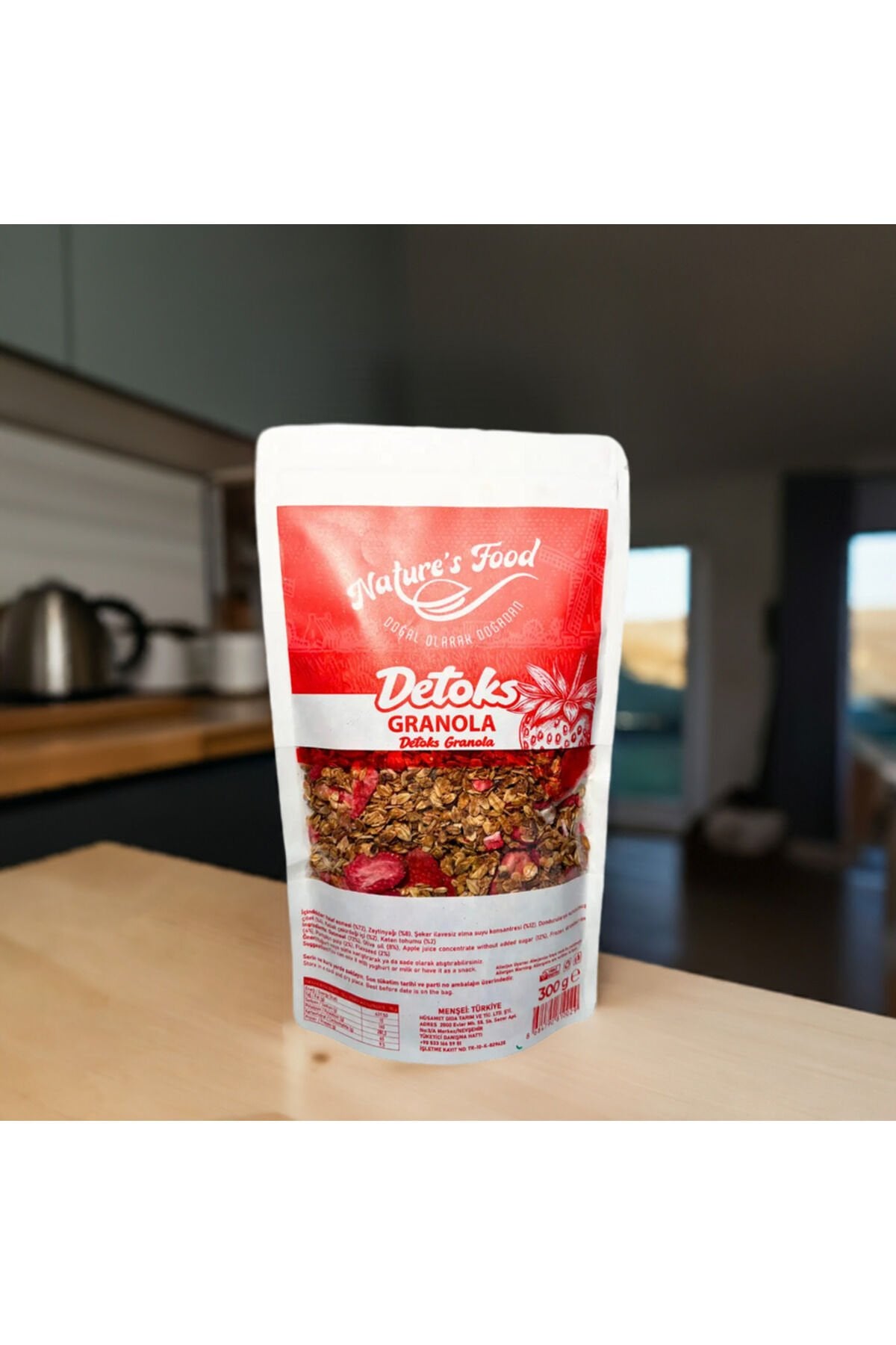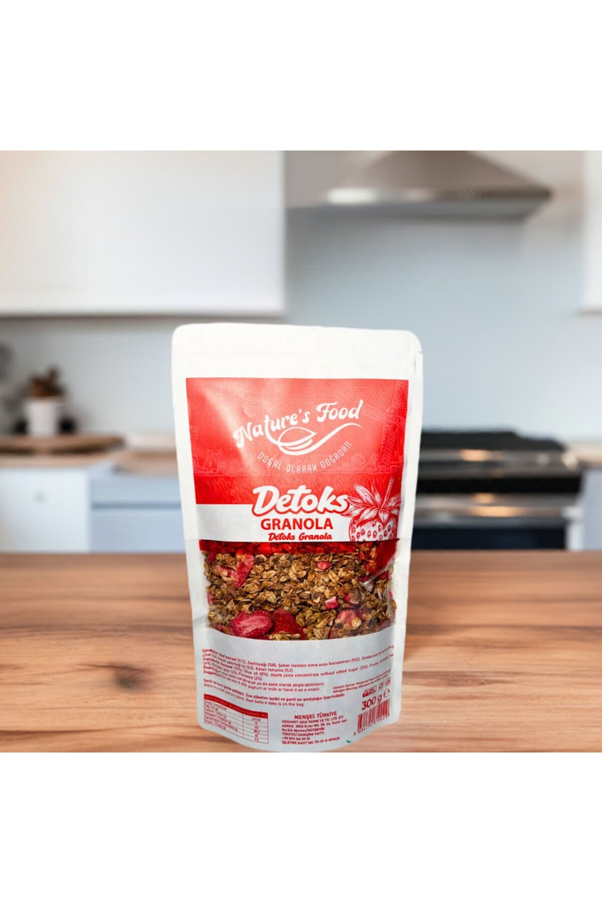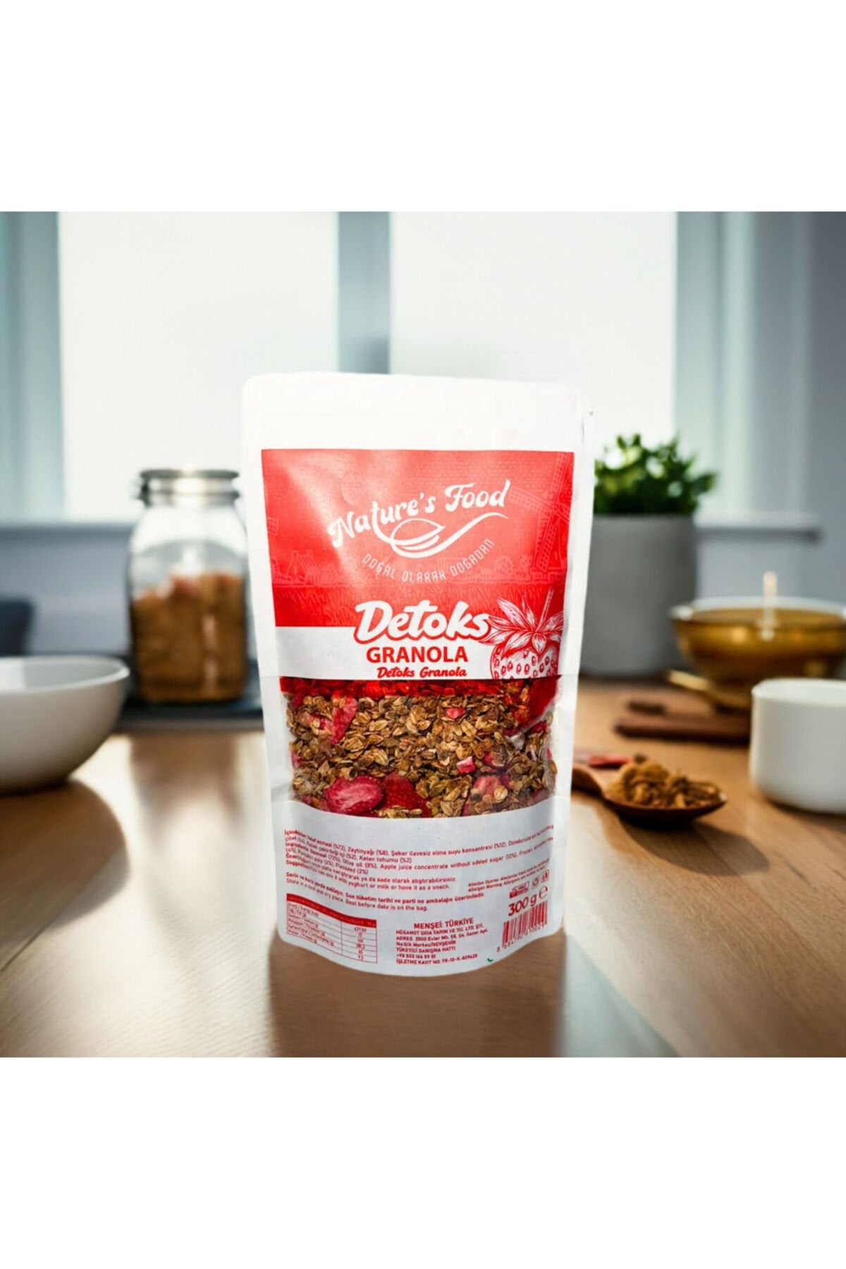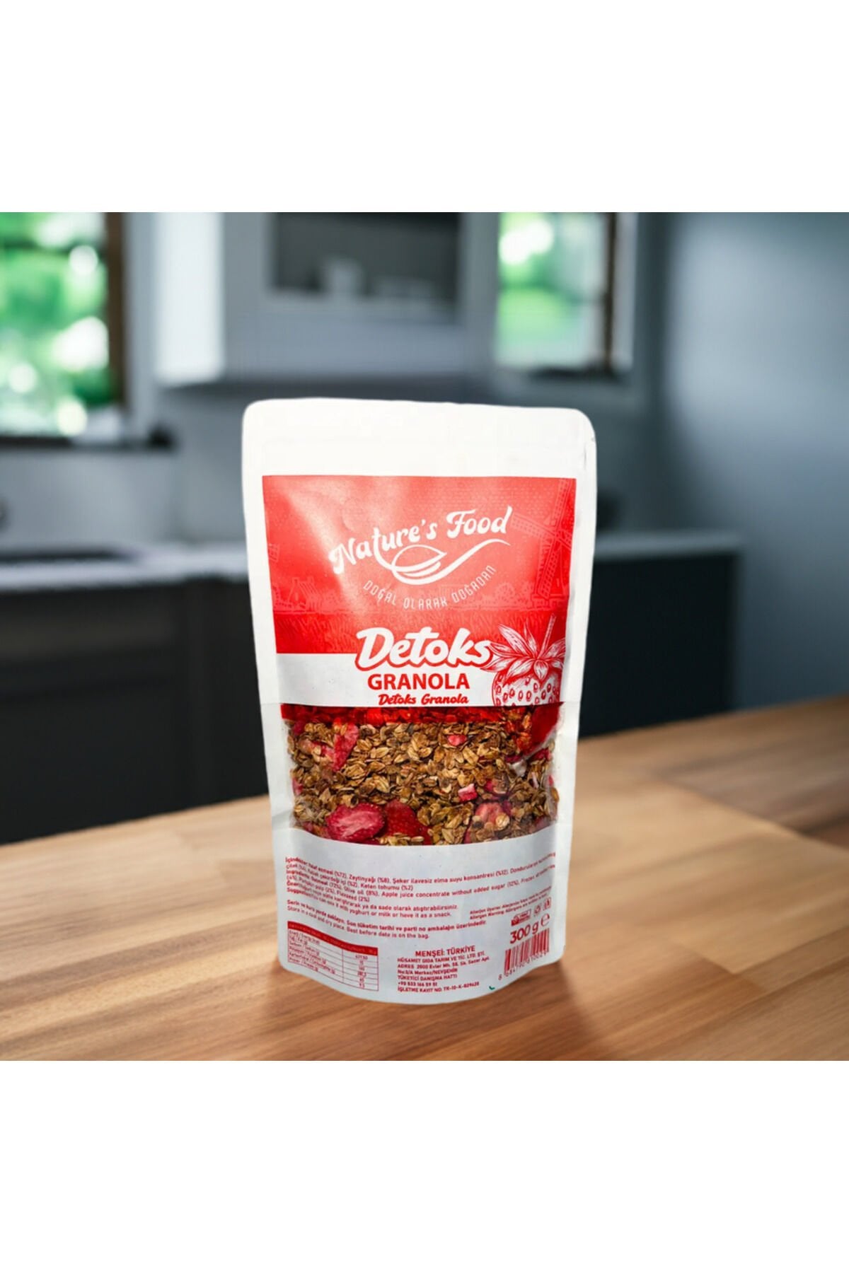 Detoks Granola, sağlıklı ve doğal malzemelerle hazırlanmış, vücudu arındırmaya yardımcı lezzetli bir atıştırmalıktır. Yüksek lif içeriği sayesinde sindirimi destekler, enerji verir ve toksinlerin atılmasını kolaylaştırır. Günlük beslenmenize pratik ve faydalı bir dokunuş sağlar.