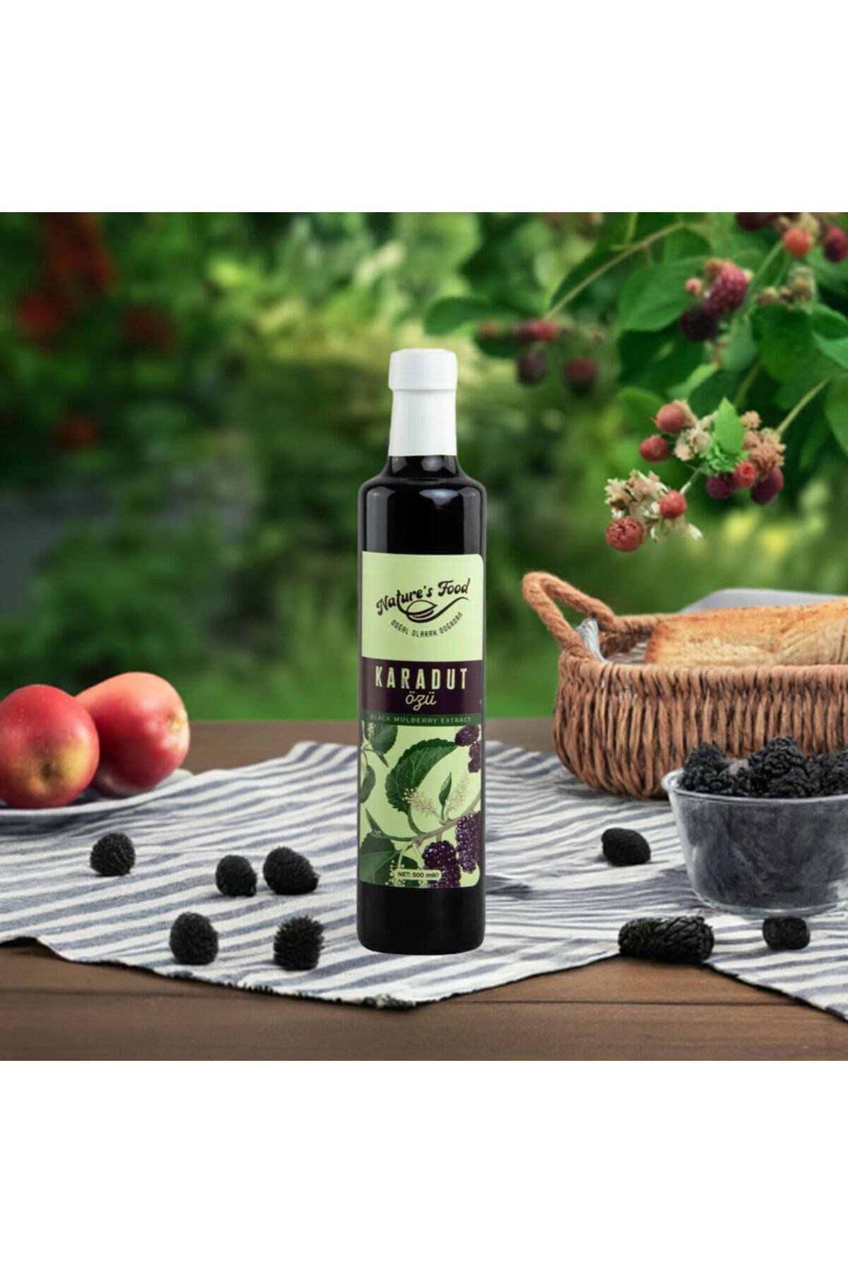 Doğanın en güçlü meyvelerinden biri olan karadut, yoğun aroması ve zengin besin değeriyle geleneksel olarak tüketilen değerli bir meyvedir. Karadut özü, taze ve olgun karadut meyvelerinin özenle işlenmesiyle elde edilir. Katkı maddesi, koruyucu veya yapay tatlandırıcı içermez.