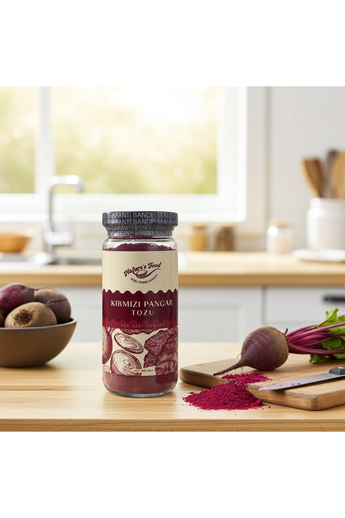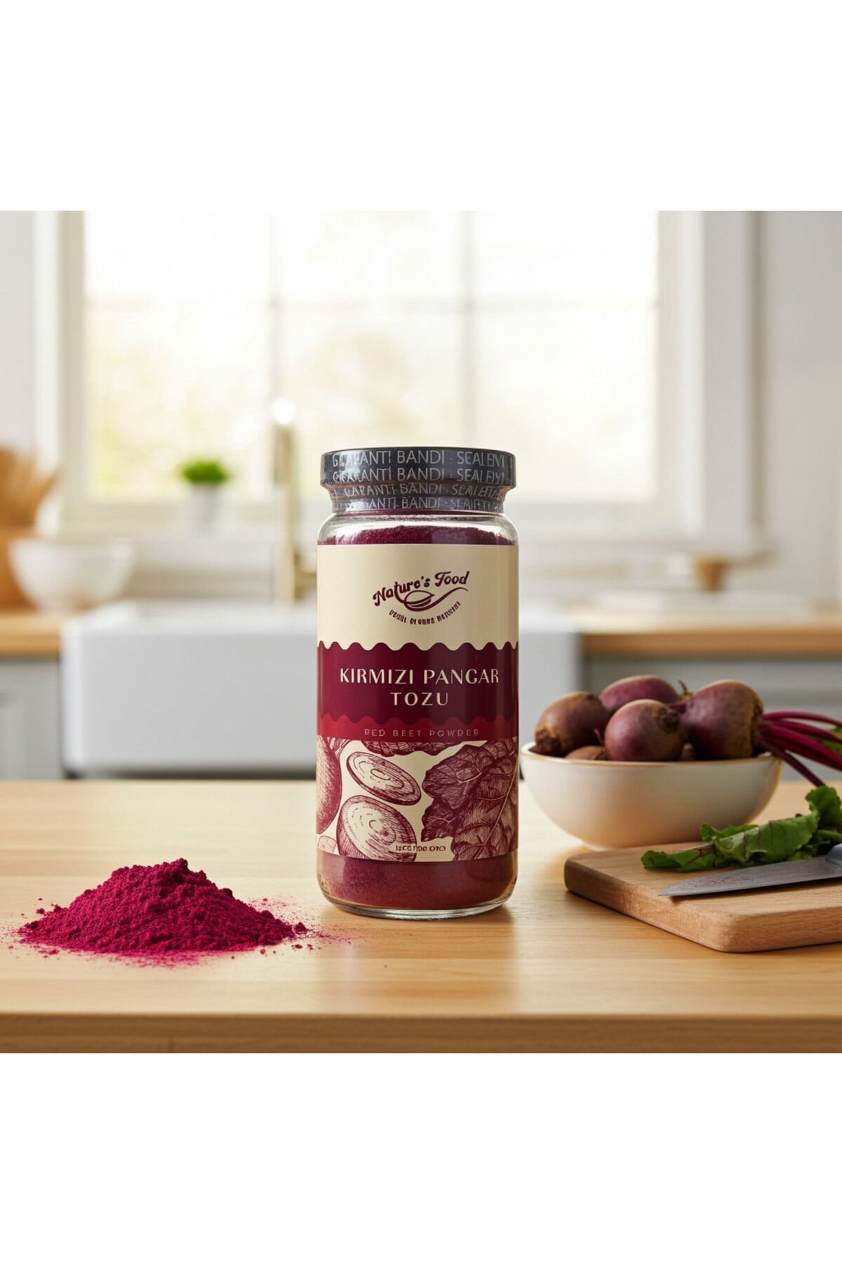 Kırmızı pancar; folat, potasyum, demir ve doğal nitratlar bakımından zengin bir sebzedir. Toz formu sayesinde hem saklaması kolaydır hem de birçok tarifte pratik kullanım sağlar.