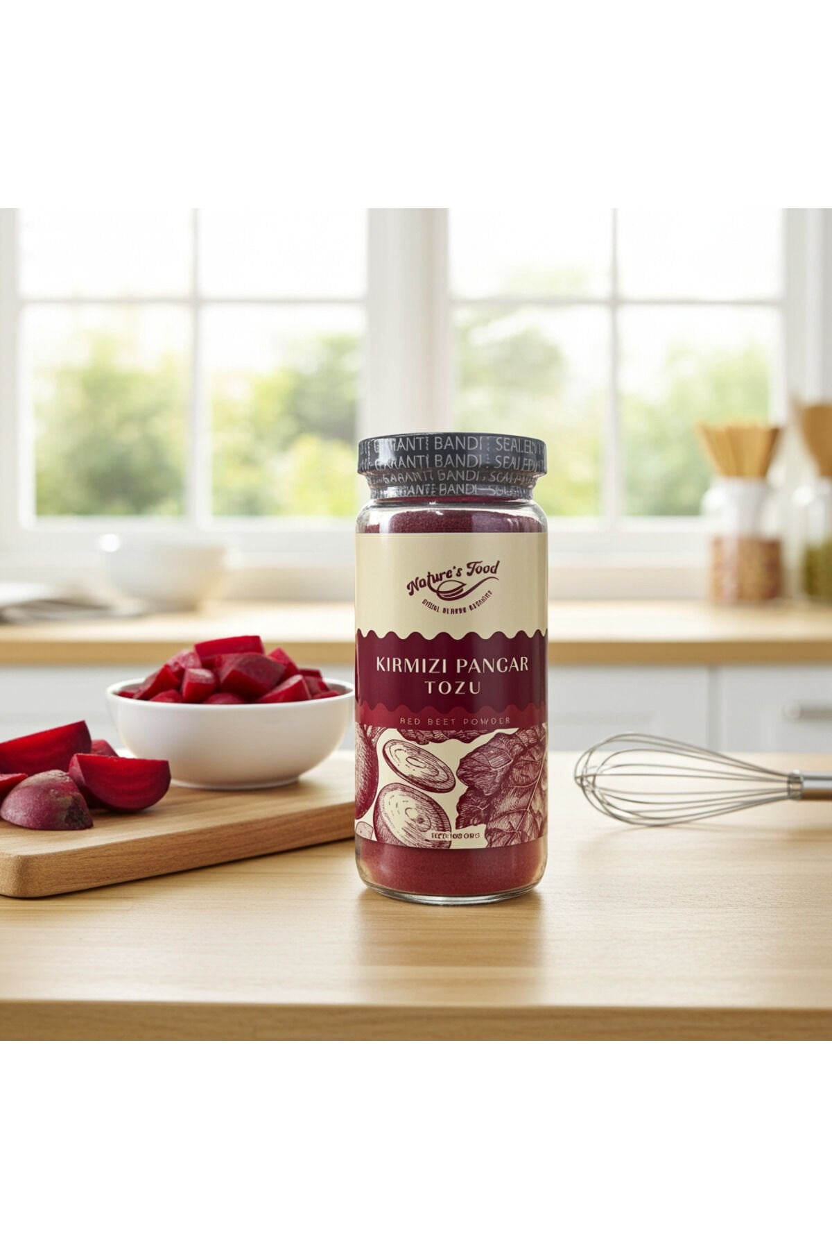 Kırmızı pancar tozu, taze kırmızı pancarların kurutulup öğütülmesiyle elde edilen doğal ve besin değeri yüksek bir süper gıdadır. Yoğun renkli yapısı, doğal antioksidan içeriği ve zengin besin değerleri sayesinde sağlıklı yaşamı destekleyen ürünler arasında önemli bir yere sahiptir. Smoothie, yoğurt, içecekler ve tariflerde pratik şekilde kullanılabilen kırmızı pancar tozu, mutfakta hem renk hem de besin değeri kazandırır.