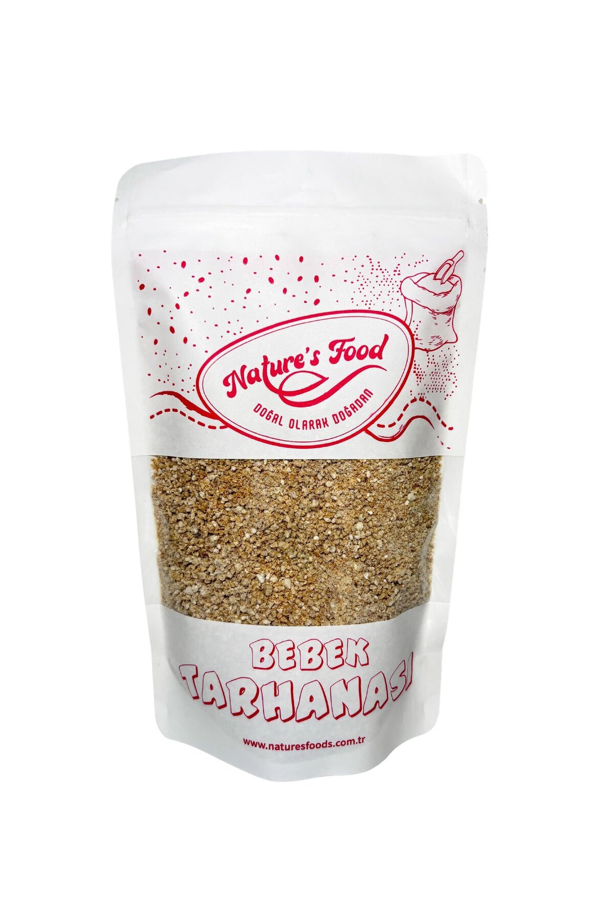 - %42,8 oranında yoğurt ile zenginleştirilmiş, bebeğinizin bağışıklık sistemini destekleyen besleyici bir tarhana.- %35,7 oranında buğday unu içeriğiyle yumuşak ve pürüzsüz bir dokuya sahip, kolay tüketilebilir.- %21,5 oranında buğday ruşeymi ile zenginleştirilmiş, sindirim sistemi sağlığını destekleyen lif kaynağıdır.- Türkiye'de üretilmiş olup yerel kaynaklı malzemeler kullanılarak hazırlanmıştır; taze ve güvenilir bir beslenme seçeneği sunar. Ruşeym sizin ve bebeğinizin saglığı için çok faydalıdır. Nature's Food
