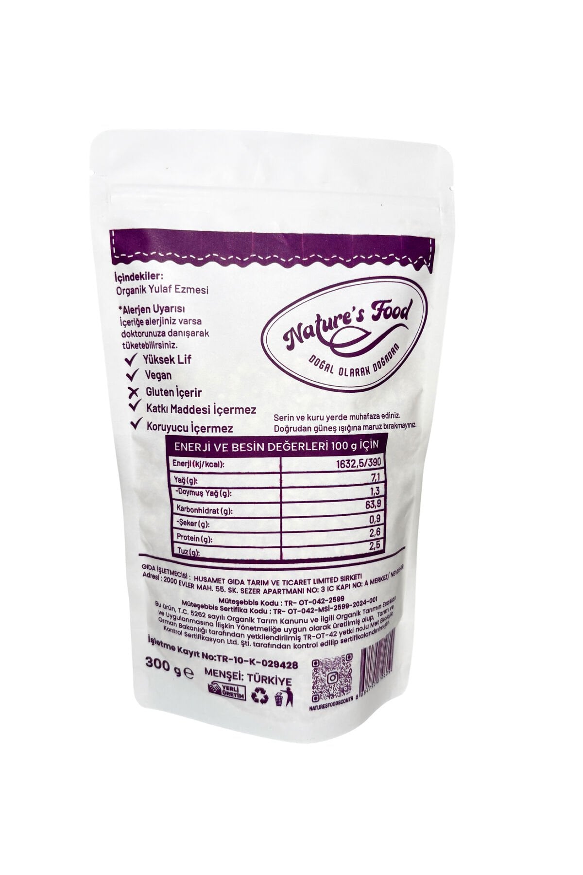 - Organik tarım yöntemleriyle üretilmiş, pestisit içermeyen yulaf ezmesi, sağlıklı yaşam tercihlerinizi destekler.; - Sertifikalı organik sertifika ile belgelendirilmiş bu ürün, kalite ve güvenilirliği garanti eder.; - Menşe yeri Türkiye olan bu yulaf ezmesi, yerel kaynaklı malzemelerle hazırlanarak taze ve lezzetli bir tüketim sunar.; - 300 gramlık ambalajıyla kolayca kullanılabilir ve pratik bir şekilde saklanabilir; aile boyu beslenme ihtiyaçlarınıza uygun ideal bir seçimdir.