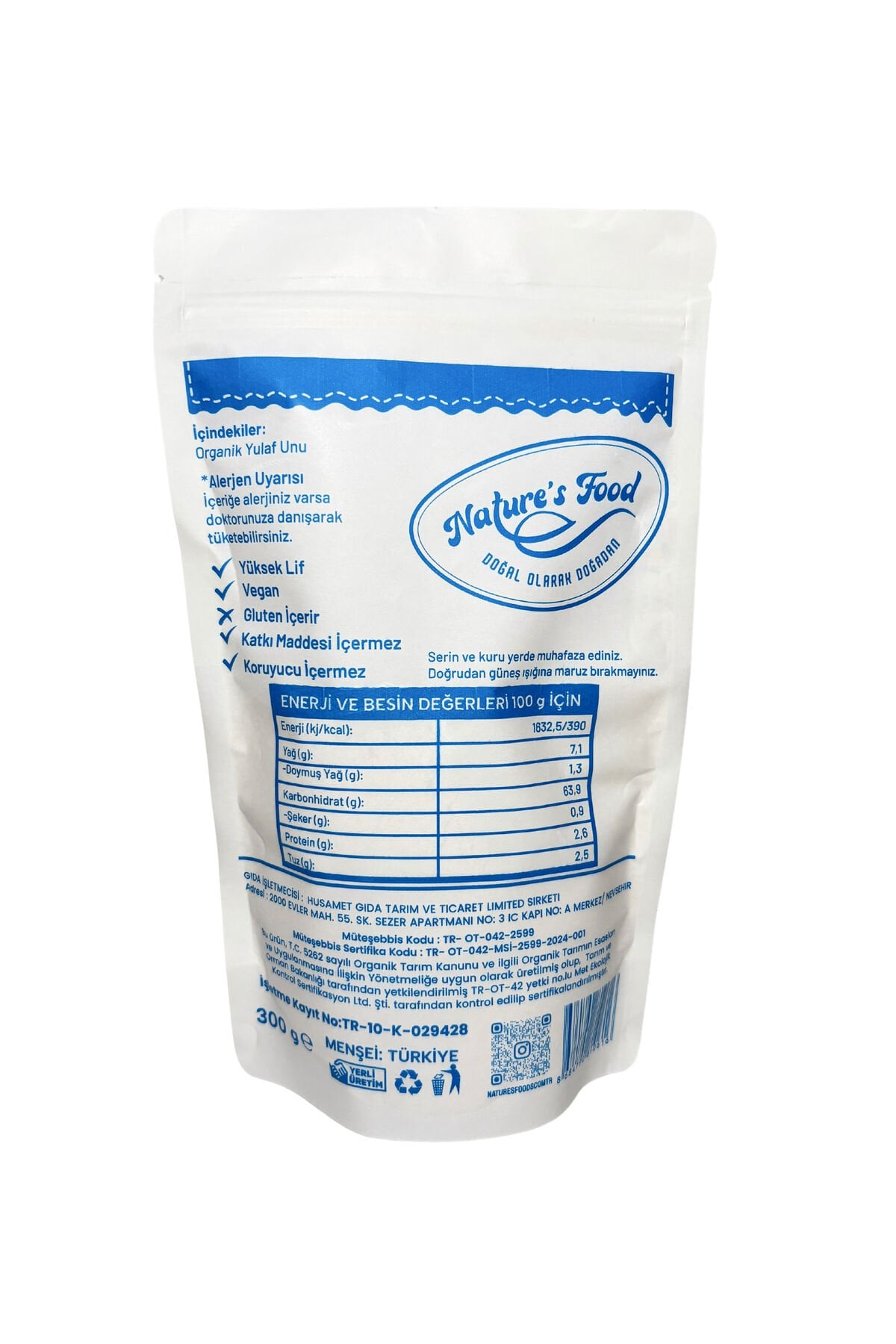 - Organik sertifikalı yapısıyla güvenle tüketebileceğiniz yulaf unu, pestisit analizleriyle doğallığından emin olabileceğiniz bir seçimdir.; - 300 gramlık ambalajıyla pratik kullanım sunar; mutfakta ihtiyaç duyulan miktarı kolayca ölçebilirsiniz.; - Türkiye menşeli bu ürün, yerel kaynaklardan temin edilerek hem ekonomik hem de yerel ekonomiye katkı sağlar.; - Organik yulaf unu, beslenmenize doğal bir lezzet katarken aynı zamanda sağlıklı yaşam tarzınızı destekler.